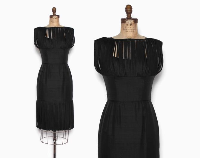 Vintage 60s Peekaboo Cocktail Dress 1960s Black Silk Carwash Fringe Fitted Mignon Cocktail Dress From Lucky Dry Goods Of Ballard Seattle Wa Attic